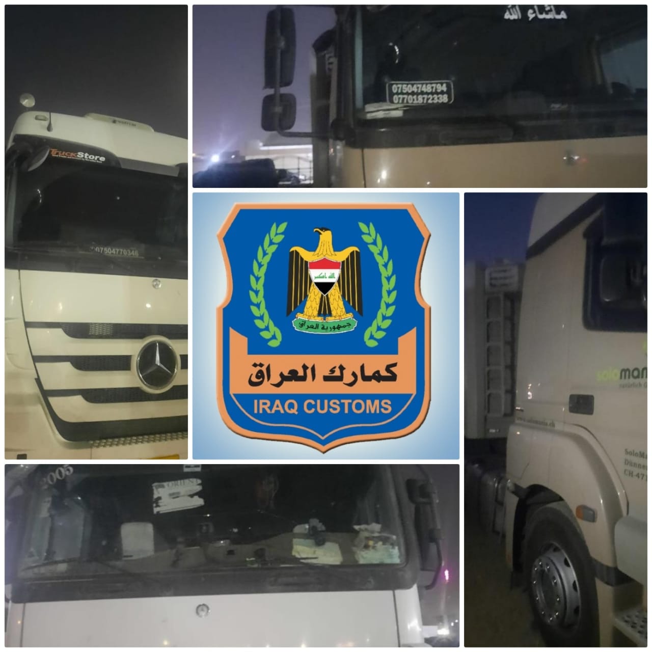 اعلنت الهيئة العامة للكمارك اليوم الأربعاء عن قيام قسم التحري و مكافحة التهريب في مديرية كمرك المنطقة الغربية بضبط (٤) شاحنة تحمل مواد متنوعة مخالفة للضوابط و التعليمات النافذة.