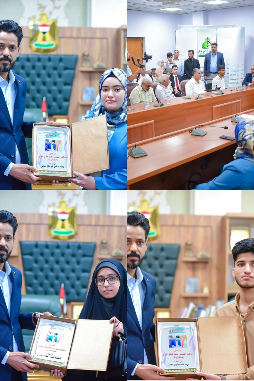 مشيدا بدور الاسرة والكوادر التدريسيةمحافظ ذي قار يكرم عددا من الطلبة المتفوقين الاوائل في المحافظة