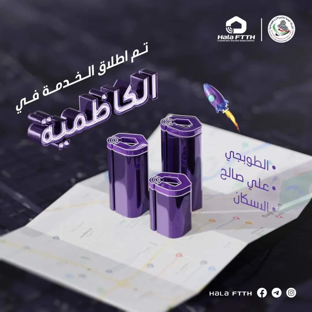 إلى أهلنا في مناطق الطوبچي وعلي الصالح والإسكان في المحلات التالية (404,406,410,621,623,625)، تعلن الشركة العامة للاتصالات والمعلوماتية، و بالتعاون مع شركة هالة الرافدين، الشركة المشغلة لمشروع الكابل الضوئي في عدد من مناطق بغداد، عن البدء بتشغيل المشروع في المناطق الواردة في اعلاه.