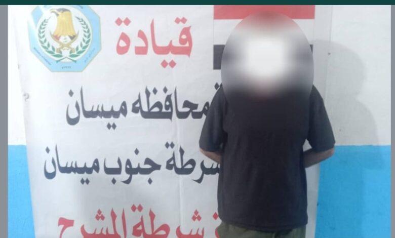 أعلنت قيادة شرطة محافظة ميسان أن مفارز الأجهزة الأمنية في قضاء الكحلاء تمكنت، وخلال وقت قياسي، من إلقاء القبض على متهم بارتكاب جريمة قتل بحق أحد المواطنين في ناحية المشرح شرق المحافظة.