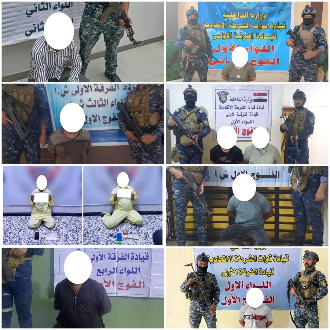 أسفر الجهد الأمني والمتابعة الدقيقة لقواطع المسؤولية عن تَمَكّنْ أبطال الشرطة الاتحادية بالتعاون مع الجهد الاستخباري ، من إلقاء القبض على 8 متهمين بمواد قانونية مختلفة تَنَوعَتْ بين (السرقة ، المشاجرة، التهديد، النصب والإحتيال )، وتمت العمليات أثر تنفيذ واجبات أوامر قبض وممارسات أمنية في مناطق (الزعفرانية ، المعامل ، الكمالية ، المدائن ، الفضيلية) ببغداد ، وفي السياق ذاته تَمَكّنتْ قوة من اللواء الثالث وبالتعاون مع وكالة الاستخبارات والأمن الاتحادي وجهاز الأمن الوطني، بعد نصب كمين مُحكم ضمن منطقة الكرادة /شارع الزيوت من إلقاء القبض وبالجرم المشهود على متهمين اثنين وبحوزتهما مادة الكريستال المخدرة تقدر ب(60 غرام) والمطلوبين للقضاء ، تم إحالة جميع المتهمين مع المواد المضبوطة اصولياً إلى الجهات ذات الاختصاص لإكمال الإجراءات القانونية والتحقيقية اللازمة بحقهم .