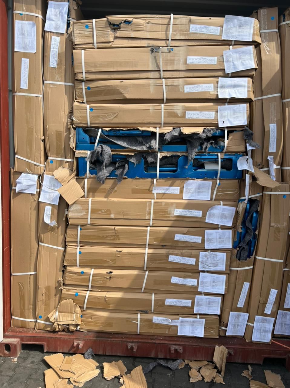 تمكنت هيأة المنافذ الحدودية بجهود ومتابعة دقيقة لكافة البضائع في منفذ ميناء أم قصر الأوسط ومن خلال مصادرنا الخاصة وتنسيق العمل والتعاون مع مركز الكمرك واستحصال موافقه السيد قاضي التحقيق تم ضبط (3) حاويات حجم ٤٠ قدم تحتوي (درجات ناريه ذات ثلاث عجلات) جميعها متجاوزة المدة القانونية المسموحة على بقائها في الميناء دون مراجعة اصحاب العلاقة.