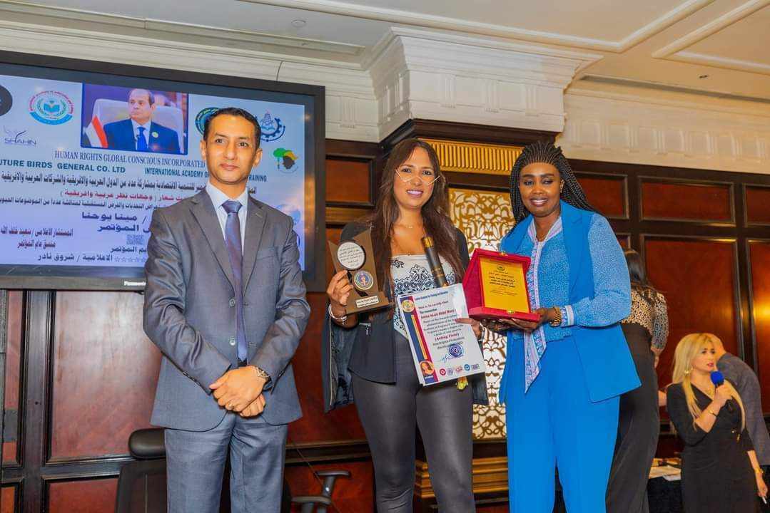 كرم مؤتمر التنمية الإقتصادية الـ 56 الفنانة إيمي إسلام الذي أقامته منظمة الضمير العالمي لحقوق الإنسان بعنوان “وجهات نظر عربية وأفريقية الفنانة إيمي إسلام، خلال المؤتمر الذي أقيم بفندق لاند مارك بالتجمع الخامس وذلك تقديرًا لتألقها في مشوارها الفني الحافل بالأعمال البارزة المتميزة التى قدمتها لجمهورها.