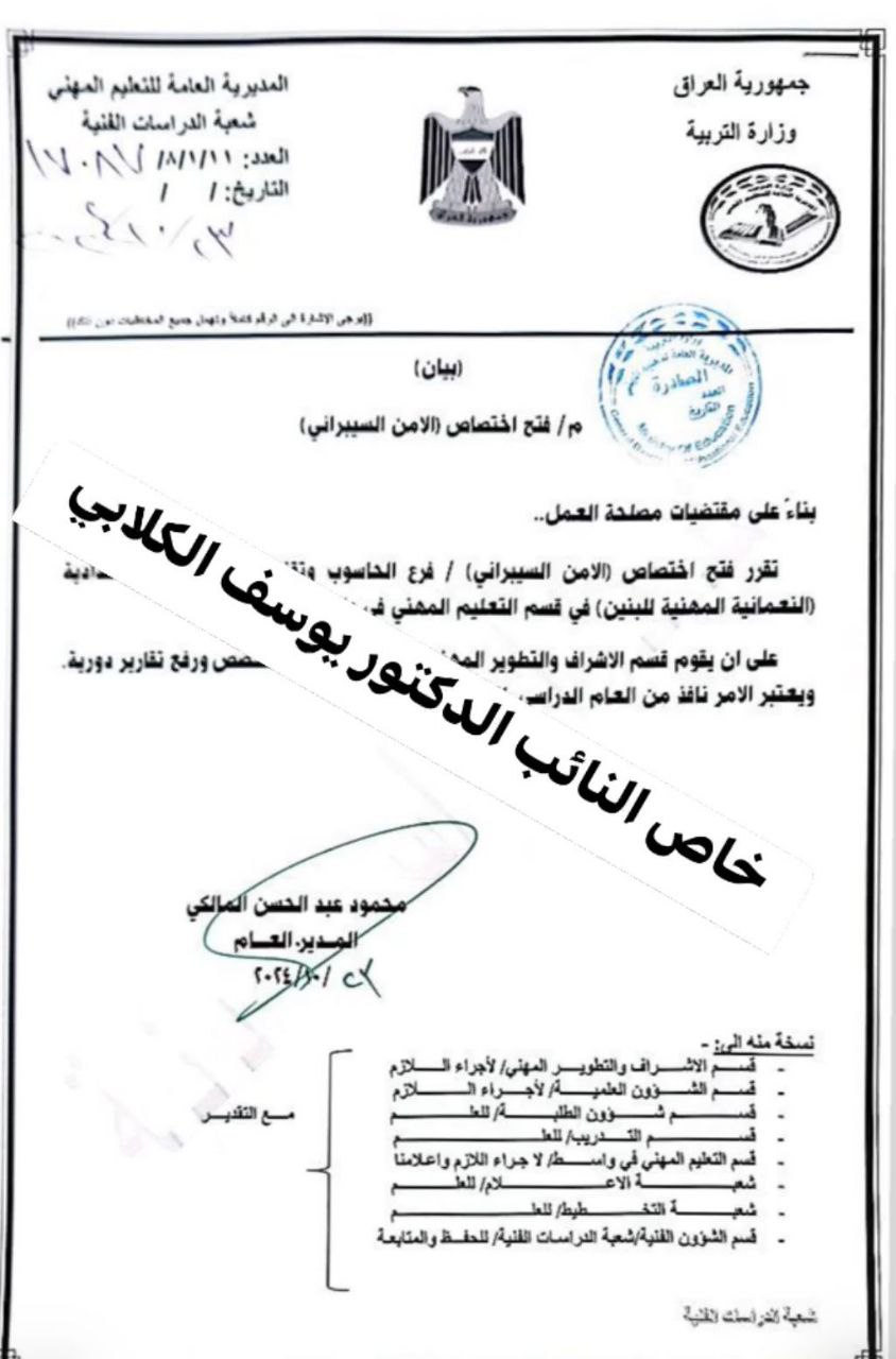 رسمياً الأمن السيبراني في اعدادية النعمانية المهنية بجهود النائب الدكتور يوسف الكلابي