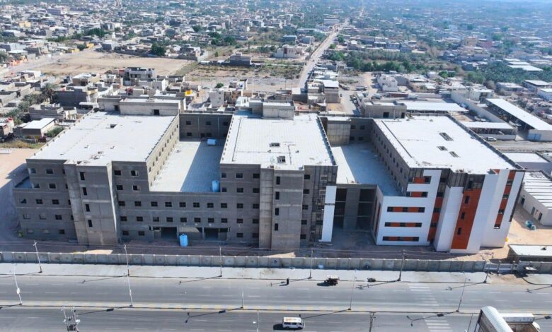وأوضحت أن المشروع يُنفَّذ وفق تصاميم حديثة على أرض تتجاوز مساحتها 22 دونماً، ويضم أربع بنايات رئيسة متعددة الطوابق، بواقع خمسة طوابق لكل بناية، إضافة إلى بناية لسكن الأطباء مكوّنة من أربعة طوابق، فضلاً عن بنايات للخدمات، والخدمات الكهربائية، والمشرحة، ومحطة المعالجة البايولوجية، والمثرمة الخاصة بالنفايات.
