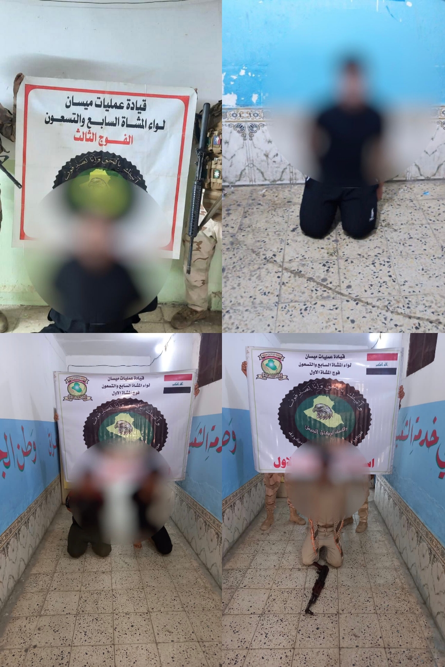 استناداً لتوجيهات قائد عمليات ميسان الفريق الركن محمد جاسم الزُبيدي بملاحقة المجاميع الخارجة عن القانون والمطلوبين للقضاء ، قوة من الفوج الأول للّواء المشاة السابع والتسعين / قيادة عمليات ميسان وبأمرة آمر الفوج وبعد المطاردة تُلقي القبض على “مسلح” أطلق النار على القوات الأمنية ، كذلك أثناء التجوال إلقاء القبض على طرفي مشاجرة في قضاء الكحلاء.