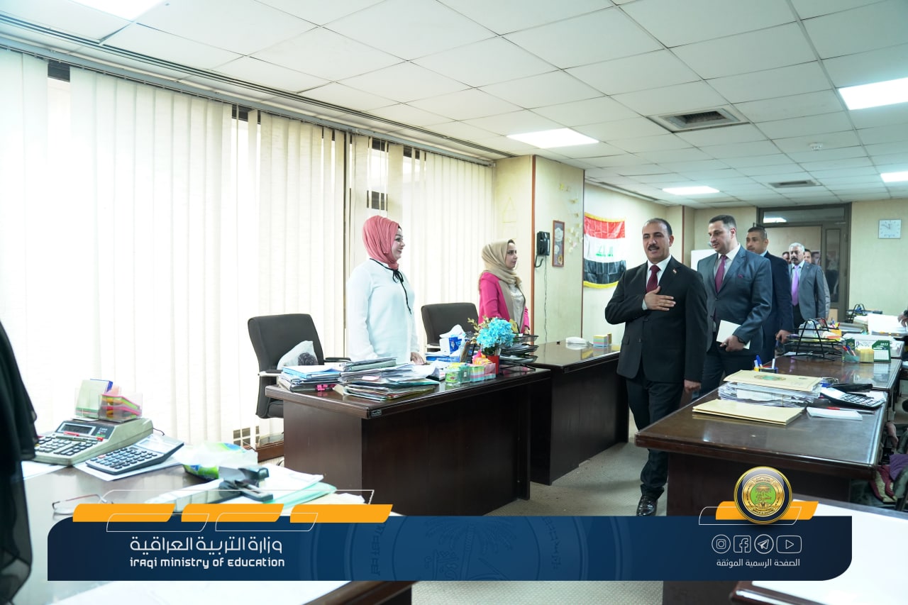 تفقد معالي وزير التربية، الدكتور إبراهيم نامس الجبوري اليوم الأثنين، مديرية الشؤون المالية والقانونية ومديرية التطوير المؤسسي والتنسيق الحكومي في مقر الوزارة؛ للاطلاع على سير عمل الموظفين وتأكيد التواصل مع الميدان التربوي من أجل تقديم الخدمات المُثلى للمواطن .