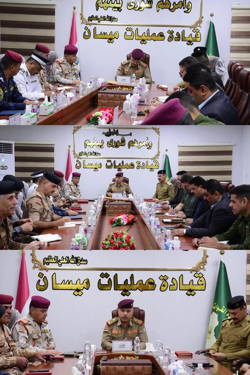 قائد عمليات ميسان يترأس مؤتمراً أمنياً لمناقشة الوضع الأمني في المحافظة.