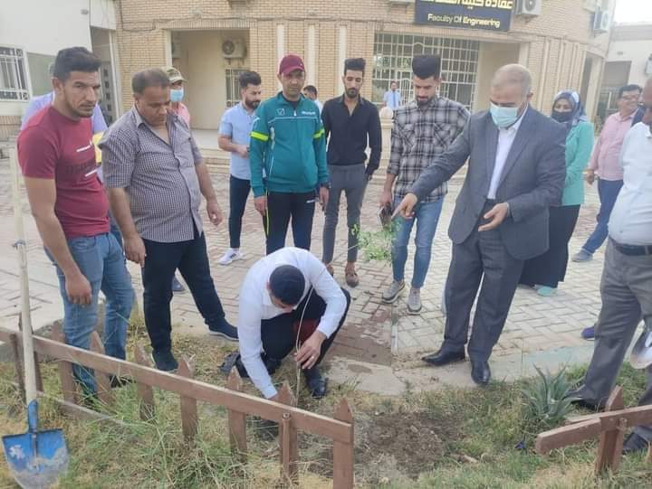 قسم النشاطات الطلابية في جامعة الكوفة ينظم حملة تطوعية لزراعة المساحات الخضراء
