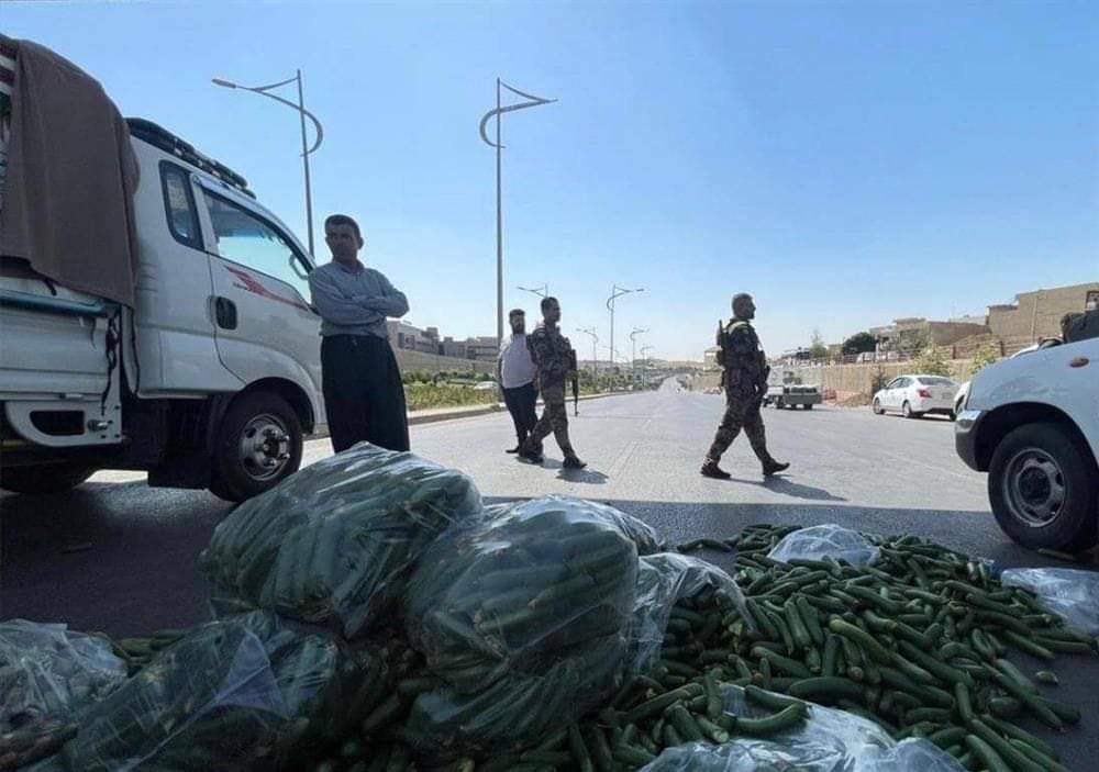 وأفاد مراسلنا إن عدداً من الفلاحين أقدموا ظهر اليوم، على قطع الطريق الرئيسي قرب مبنى محافظة السليمانية، وذلك احتجاجا على عدم تسويق إنتاجهم المحلي بسبب امتلاء الاسواق المحلية بالمنتجات الاجنبية .