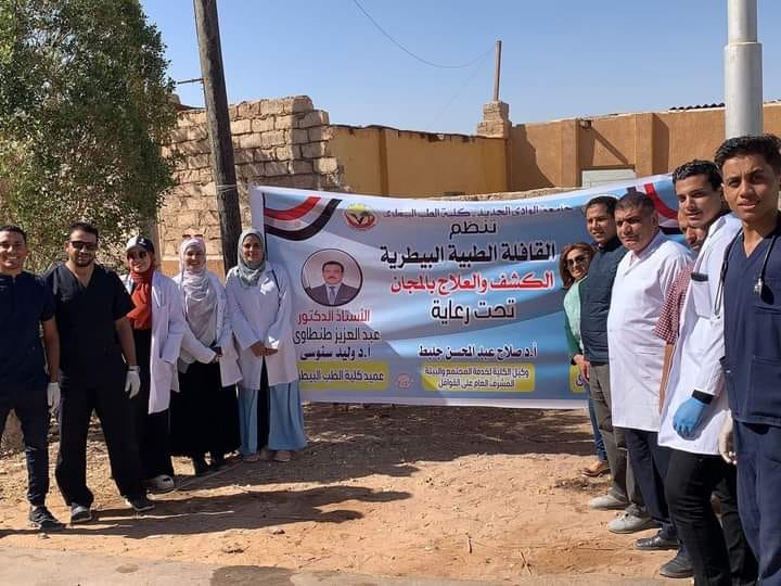 برعاية الأستاذ الدكتور عبدالعزيز طنطاوي رئيس جامعة الوادي الجديد، وإشراف الأستاذ الدكتور مصطفى محمود المشرف على قطاع خدمة المجتمع وتنمية البيئة، والأستاذ الدكتور وليد سنوسى عميد كليه الطب البيطري بجامعة الوادي الجديد، وبمشاركة أعضاء هيئة التدريس والهيئة المعاونة، و طلاب من الفرقتين الرابعة والخامسة بالكلية.