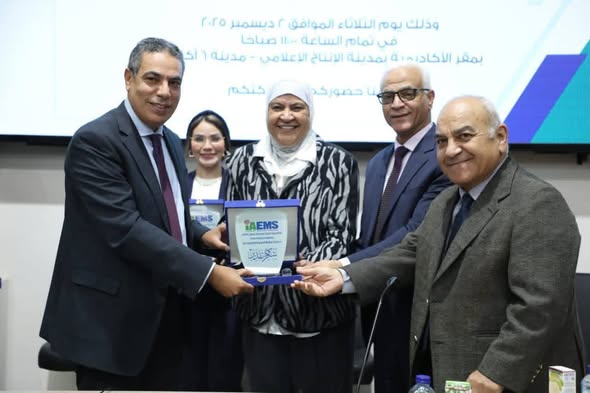 وفي نهاية الندوة قام الأستاذ الدكتور/ عادل عبد الغفار – رئيس الأكاديمية الدولية للهندسة وعلوم الإعلام والأستاذ الدكتور/ خالد عبد الجواد عميد شعبة علوم الإعلام بتكريم ضيوف الندوة من أعضاء مؤسسة مصر الخير .