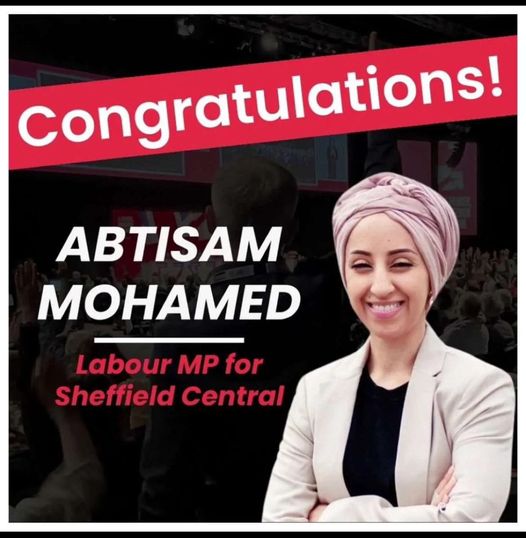أصدرت شبكة إعلام المرأة العربية برئاسة المستشار الإعلامي د. معتز صلاح الدين بيانا عاجلا اليوم تقدمت خلاله بخالص التهنئة إلى الرائدة الاستاذة ابتسام محمد اليافعى لفوزها فى الانتخابات البرلمانية فى بريطانيا حيث فازت بمقعد وسط شفيلد عن حزب العمال البريطانى مما يعد انتصارا كبيرا للجالية العربية عامة واليمنية خاصة