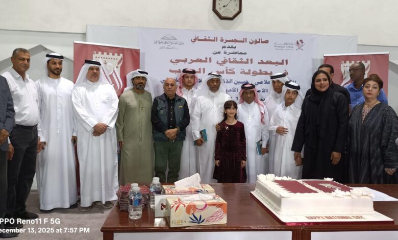القى الكاتب والصحفي العراقي حسين الذكر محاضرة بعنوان ( البعد الثقافي العربي لكاس العرب) بالدوحة بدعوة من نادي الجسرة الثقافي الاجتماعي القطري وبالتعاون مع دار البدع للنشر