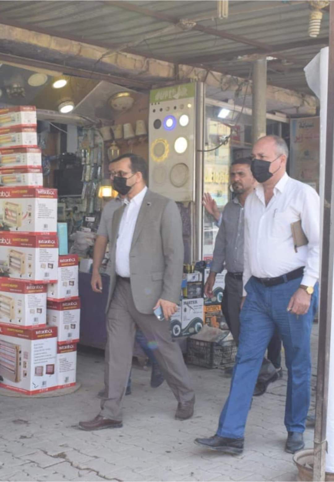 رافقه في تجواله معاونه الفني المهندس أسعد المعموري ورئيس قسم المتابعة في ديوان المحافظة المهندس حسن علي عيدان ومدير بلديات الديوانية المهندس محسن حمزة راضي ومدير بلدية قضاء الحمزة الشرقي .