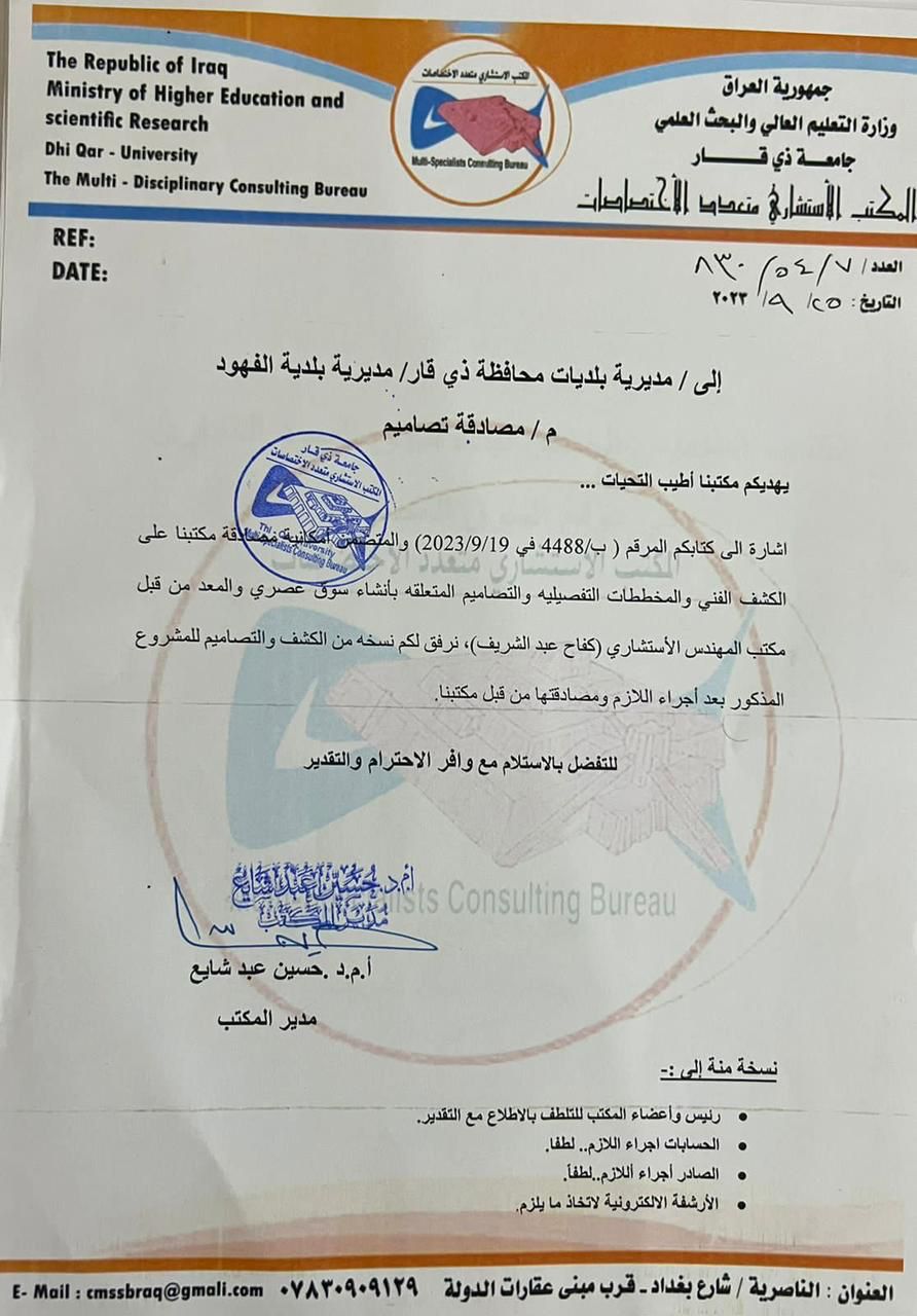 محافظ ذي قار يوعز بافتتاح مستشفى الفهود وادراج مشاريع مهمة في القضاء ويصادق على تصاميم انشاء السوق الشعبي للقضاء ويوجه بمباشرة العمل خلال٧٢ساعة