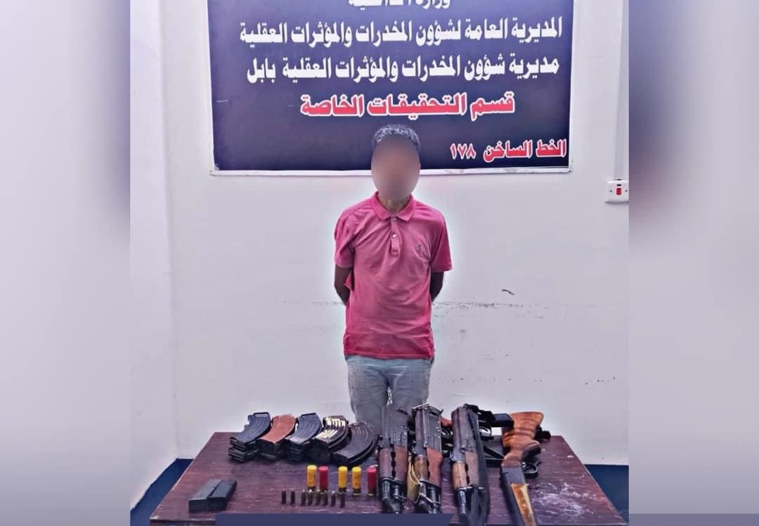 في عملية نوعية نفذتها مفارز مديرية شؤون المخدرات والمؤثرات العقلية بابل ، بالاشتراك مع قوة من الفوج التكتيكي تمكنت القوات الأمنية من إلقاء القبض على أحد تجار المخدرات المهمين في المحافظة ، وضبط كمية من الأسلحة والذخائر بحوزته .