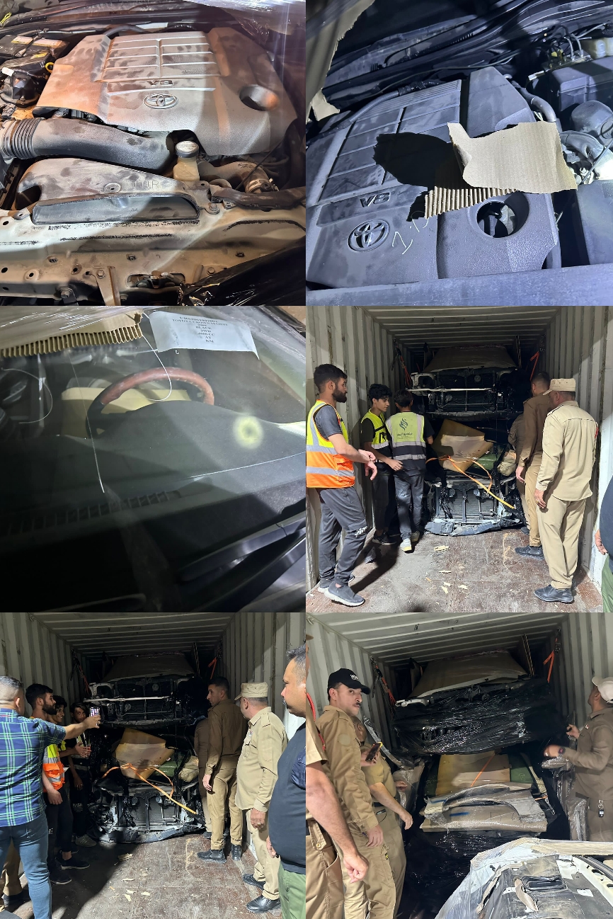 تمكنت هيأة المنافذ الحدودية بجهود ومتابعة دقيقة لكافة البضائع في منفذ ميناء أم قصر الشمالي بناءاً على المعلومات الواردة الينا من مصادرنا الخاصة وبعد استحصال موافقة السيد قاضي التحقيق تم ضبط حاوية حجم (40) قدم في ساحة الترحيب الكبرى تحتوي على أربعة عجلات نوع (تويوتا صالون) دون الموديل المسموح الاستيراد مخبأة خلف أدوات احتياطية معدة للتهريب.
