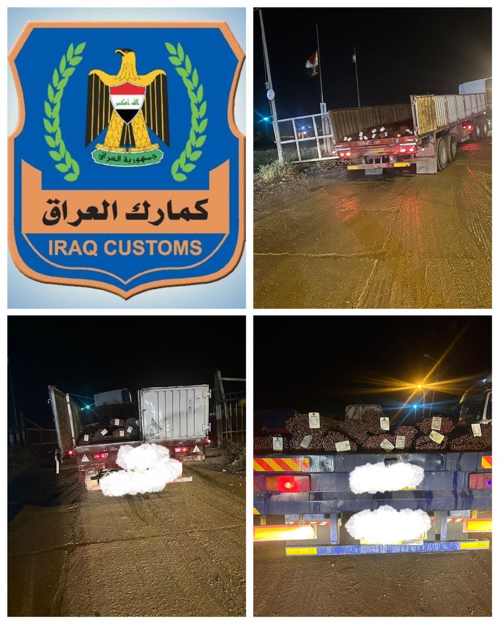 مركز كمرك المنذرية الحدودي يعيد ارسالية ( شيش تسليح ) بوزن ( ٣٣٦ ) طن لمخالفتها الشروط والمواصفات القياسية العراقية