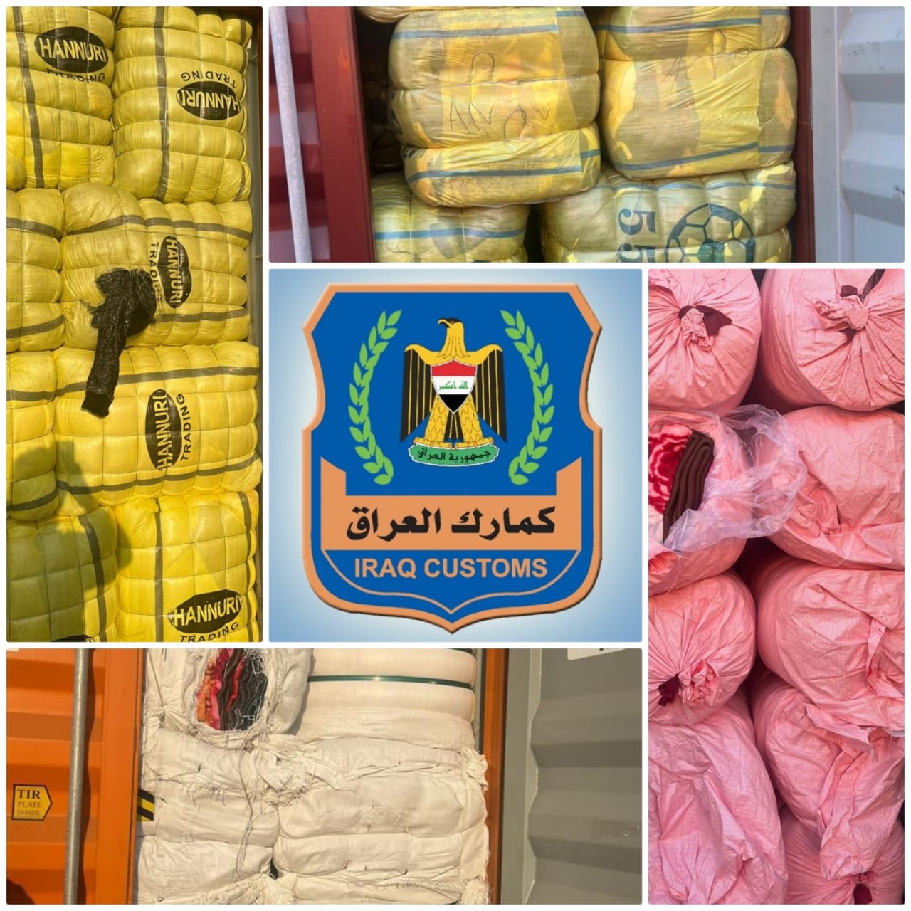 اعلنت الهيئة العامة للكمارك اليوم الأربعاء عن ضبط ١٢ حاوية تحمل( ملابس مستعملة وبطانيات ) مخالفة لضوابط الأستيراد في مركز كمرك ام قصر الشمالي .