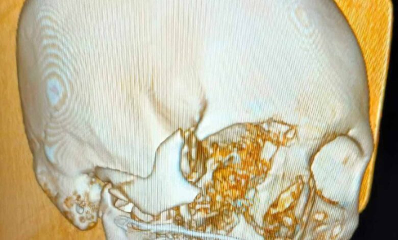 وذكرت إدارة المستشفى أن الحادث أسفر عن تهشم واسع في عظام الوجه والفكين مصحوب بنزف شديد وكسور متعددة معقدة، مما استدعى إجراء الإسعافات الأولية العاجلة وإجراء فحص المفراس الحلزوني لتحديد طبيعة الإصابات، قبل إدخال المريض إلى صالة العمليات على وجه السرعة.