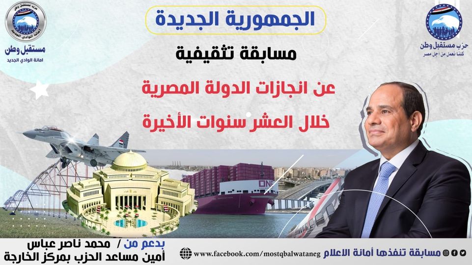 مستقبل وطن بالوادي الجديد ينظم مسابقة تثقيفية عن إنجازات الدولة المصرية