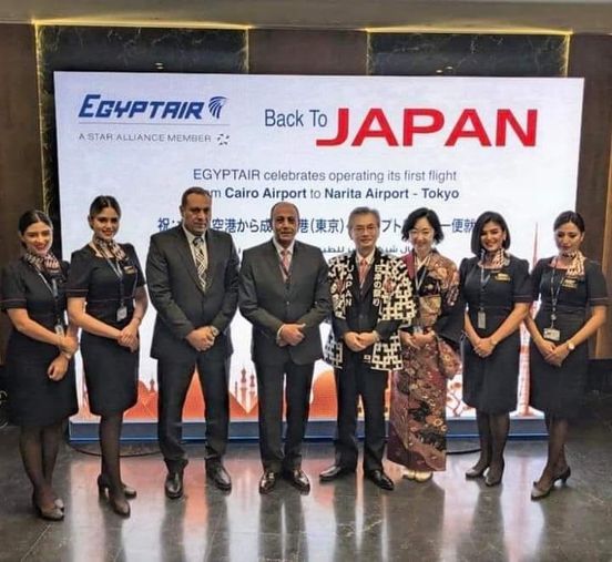استمرارًا للجهود التنموية التي تتبناها وزارة الطيران المدني وشركاتها التابعة من أجل تنشيط الحركة الجوية والسياحية الوافدة من وإلى جمهورية مصر العربية وفقًا لرؤية الدولة المصرية بالوصول إلى ٣٠ مليون سائح بحلول عام ٢٠٣٠ ، شهد مساء أمس الفريق محمد عباس حلمى وزير الطيران المدنى والسيد هيروشي أوكا سفير دولة اليابان بالقاهرة، مراسم الاحتفال بإعادة إنطلاق أولى رحلات الشركة الوطنية “مصر للطيران” المتجهه من مطار القاهرة الدولى إلى مطار ناريتا –بالعاصمة اليابانية طوكيو،، وذلك بعد توقف دام لأكثر من ثلاث سنوات في أعقاب تداعيات جائحة كورونا.