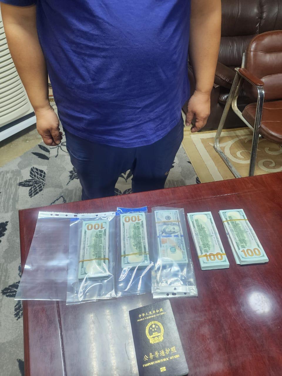 منفذ مطار البصرة : القبض على مسافر اجنبي وبحوزته (50,000) خمسون الف دولار أمريكي معدة للتهريب