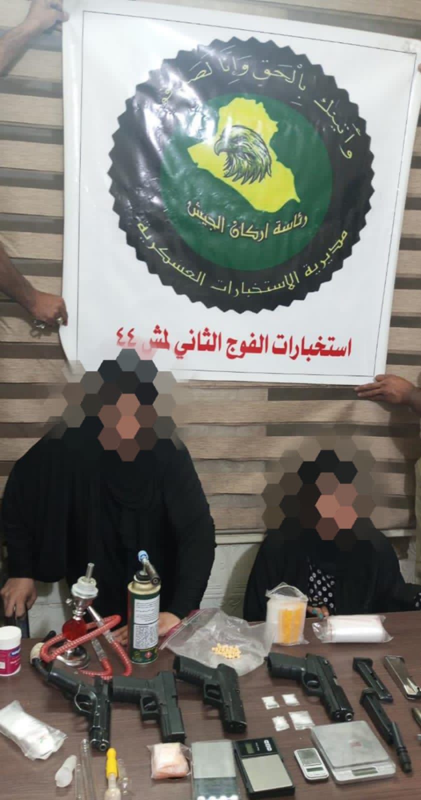القاء القبض على (٩) مطلوبين قضائياً، بينهم ارهابيين اثنين، وعصابتين للمتاجرة بالمواد المخدرة، وضبط كمية من المواد المخدرة وعدد من الاسلحة والاعتدة الغير مرخصة بجانبي الكرخ والرصافة