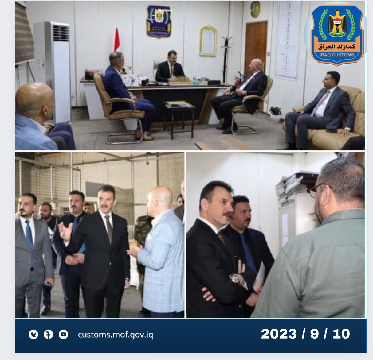 أجرى مدير عام الهيئة العامة للكمارك المستشار حسن العكيلي اليوم الاحد المصادف ١٠ أيلول ٢٠٢٣ جولة تفقدية في مركز كمرك الشحن الجوي في مطار بغداد الدولي ، و أطلع سيادته على سير العمل في كافة اقسام المركز ، و لاسيما مخازن شحن البضائع و البرادات و أماكن حفظ الادوية و آكد على الحرص و الدقة في عملية الخزن حفاظًا على صحة المواطنين ، و أبدى عددا من الملاحظات للنهوض بالعمل الكمركي .
