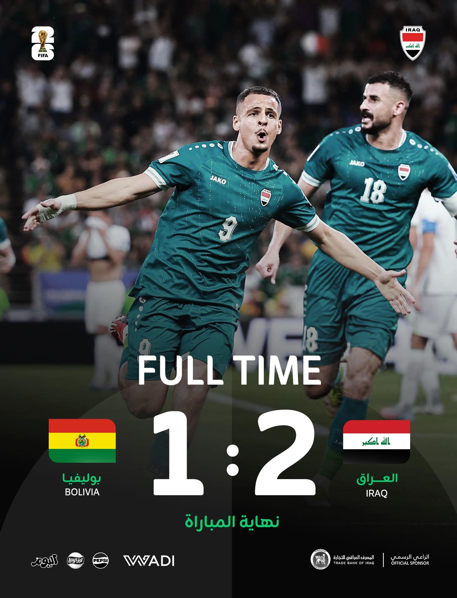 بعد انتظار دام نحو أربعة عقود كتب منتخب العراق لكرة القدم فصلًا جديدًا في تاريخه حين نجح بقيادة المدرب غراهام أرنولد في تحقيق فوز ثمين على منتخب بوليفيا ليحجز بطاقة التأهل إلى كأس العالم 2026 الذي سيُقام في الولايات المتحدة الأمريكية كندا والمكسيك.