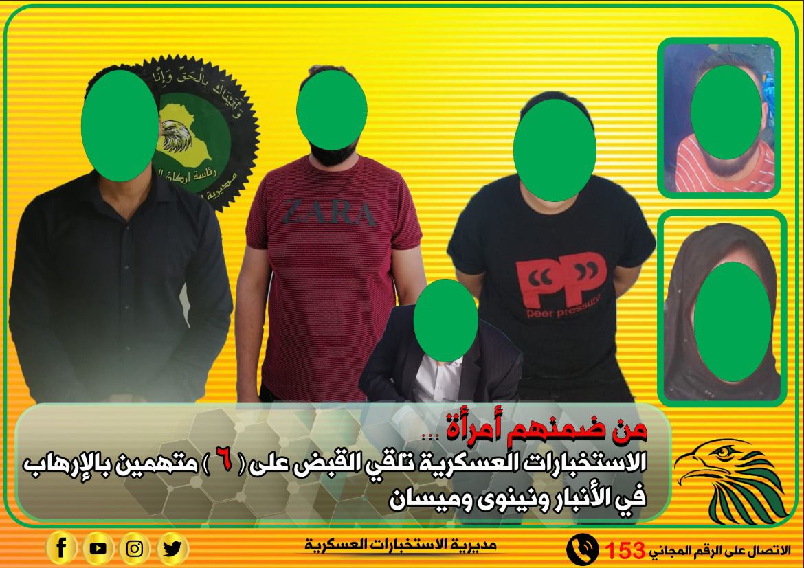 من بينهم متهمة … الاستخبارات العسكرية تلقي القبض على ( ٦ ) متهمين بالإرهاب في الأنبار ونينوى وميسان