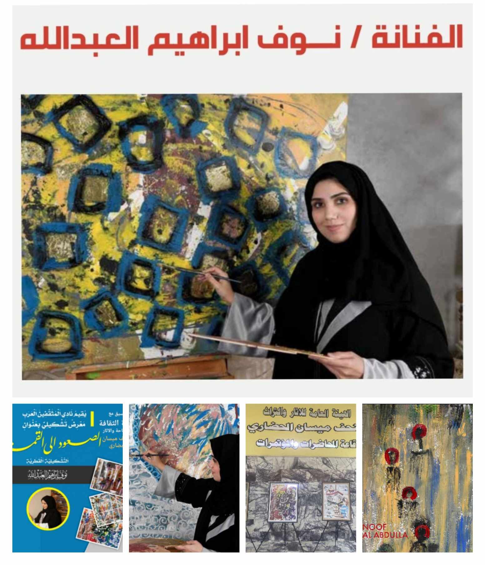 وبين مؤسس نادي المثقفين العرب الأديب محمد رشيد ” ان الفنانة التشكيلية القطرية المبدعة نوف فنانة متميزة وطموحة تخرجت من مركز قطر للقيادات كذلك معهد الدوحة للدراسات العليا بدرجة الماجستير التنفيذي في الإدارة العامة وتأثرت بالفنان الروسي فاسيلي كاندينسكي الذي يعد واحدا من أهم المبتكرين والمجددين في الفن التجريبي الحديث ” ، نظمت الفنانة الكثير من المعارض الشخصية و المشتركة في العراق والوطن العربي ، ضيفا ان المعرض سوف يختتم باجراء حلقة نقاشية لمجموعة من التشكيليين العراقيين والعرب عن تجربتها في مجال الرسم التشكيلي .