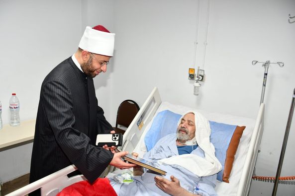 وقام فضيلة الأستاذ الدكتور أسامة الأزهري وزير الأوقاف بتفقد وحدات المستشفى، وزيارة عدد من المرضى، وأهداهم نسخة من كتاب الله (عز وجل) ، سائلًا الله (عز وجل) أن يمن عليهم بالشفاء العاجل.
