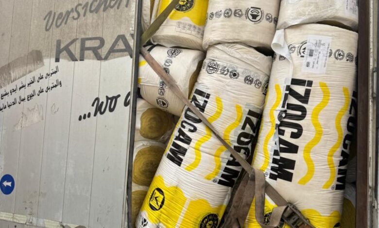 (مشروبات كحولية ،اصباغ شعر،ثلاجات مستعملة ,ملابس جديدة , عازل حراري , مواد احتياطية , مقاطع بلاستك والالمنيوم , رول ورق جدران , مجمدات جديدة ) .
