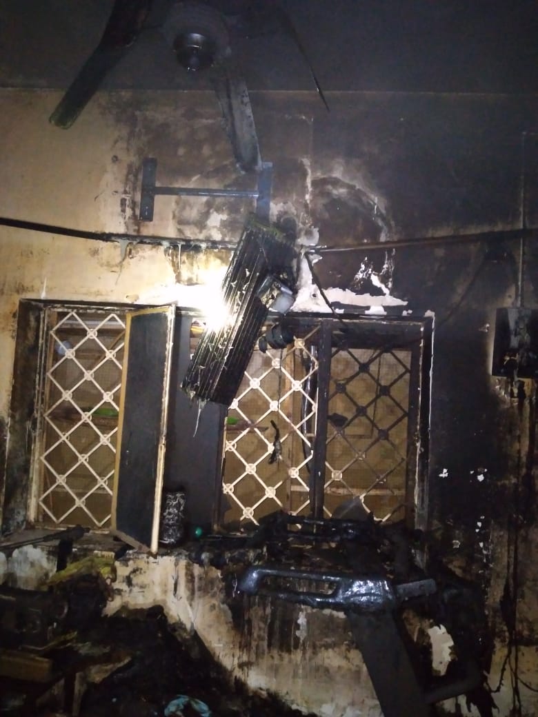 يذكر ان سبب الحادث كان نتيجة عطب كهربائي داخل جهاز التكييف (السبلت) مما اشعل الحريق بادئ الامر .