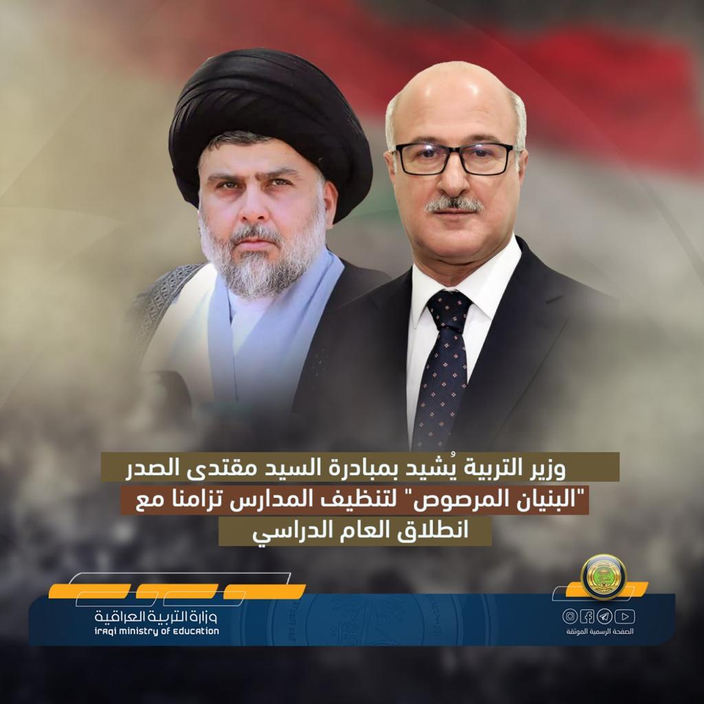 وزير التربية يُشيد بمبادرة السيد مقتدى الصدر “البنيان المرصوص” لتنظيف المدارس تزامنا مع انطلاق العام الدراسي