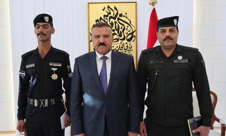 وزير الداخلية يكرم أحد رجال شرطة العقود بعد تمكنه من حيوان مفترس داخل إحدى الدوائر الحكومية في الأنبار