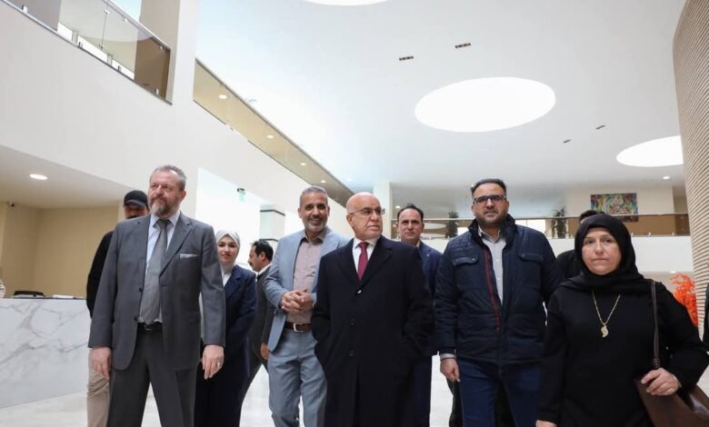 واجتمع السيد الوزير بعدد من الملاكات الطبية والتمريضية التي ستشغل المستشفى مؤكدا على ضرورة ان يكون العمل في المستشفى مثاليا وحسب احدث المعايير العالمية وان خدمة المريض هي أساس العمل ٠