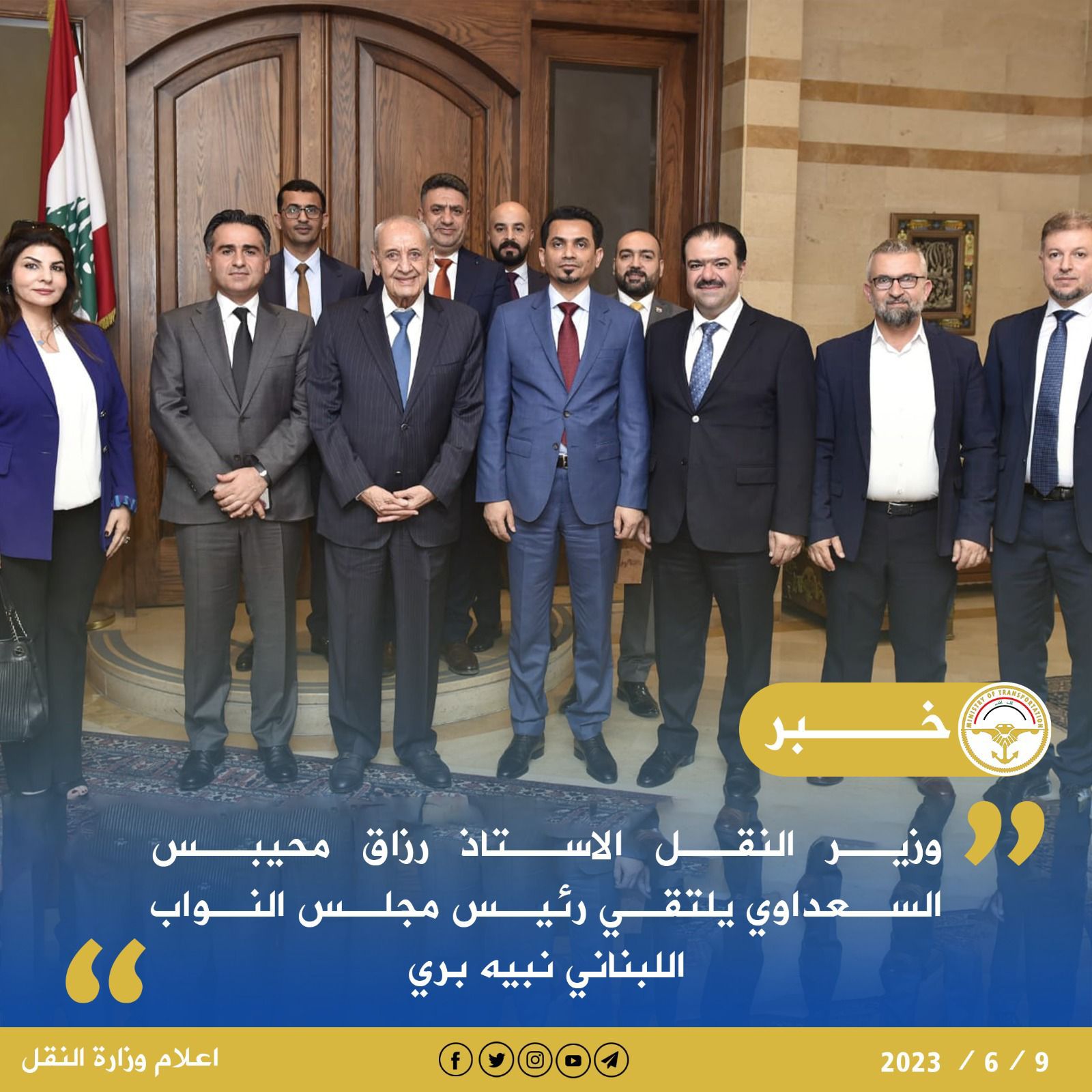 وزير النقل رزاق محيبس السعداوي يلتقي رئيس مجلس النواب اللبناني نبيه بري……التقى وزير النقل الاستاذ رزاق محيبس السعداوي، اليوم الجمعة، رئيس مجلس النواب اللبناني السيد نبيه بري، في العاصمة بيروت.
