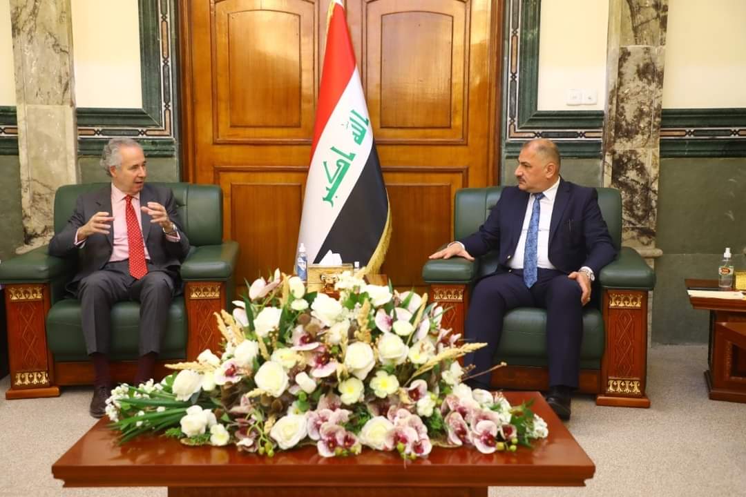 اِلتقـى وزير الصناعة والمعادن السيد منهـل عزيـز الخبـاز اليوم الأحد المُوافق ٢٠٢٢/٦/١٩ في مكتبه الرسمي بمقر الوزارة السفير الأسباني لدى بغداد السيد بيـدرو مارتينيـز للتباحُث بشأن تعزيز علاقات التعاون الصناعي وفُرص الشراكة المُتاحة لإقامة مشاريع جديدة وواعدة تخدم الجانبيـن .