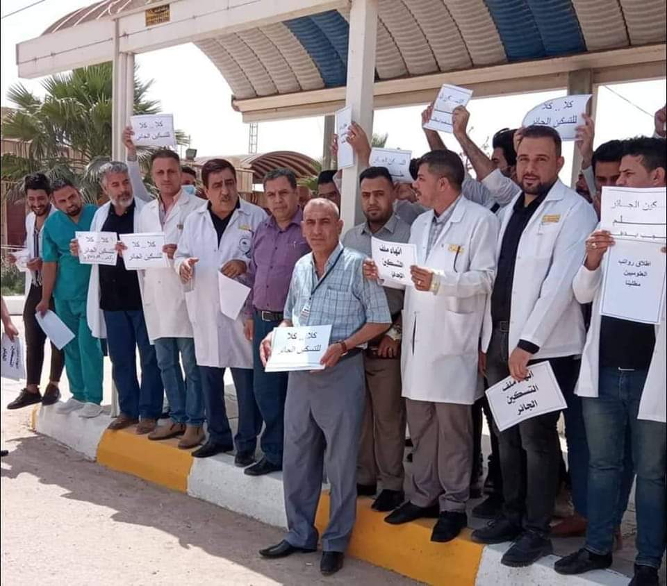 بمشاركة مديرها وكوادرها الادارية اقام منتسبي مستشفى القاسم العام وقفة احتجاجية في ساعة الدوام الاولى للمطالبة برفع التسكين عن الملاكات الصحية والتمريضية ، مهددين بإضراب عام في حال عدم استجابة الوزارة لمطالبهم .