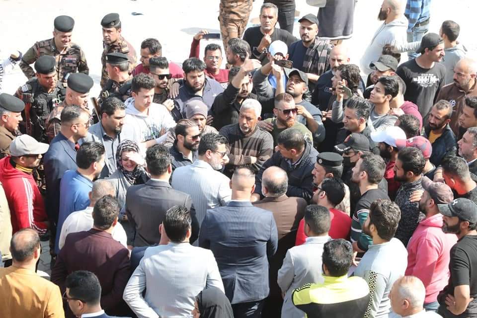 التقـى وكيل وزارة العمل والشؤون الاجتماعية للشؤون الإدارية والقانونية الدكتور علاء عبود السكيني عدداً من المتظاهرين امام باب الوزارة للوقوف على مشكلاتهم المتضمنة ايجاد حل لموضوع الديون المترتبة بذمة بعض المستفيدين من اعانة الحماية الاجتماعية ممن تم ايقاف اعاناتهم احترازياً بسبب وجود فرد من افراد الاسرة يتقاضى راتب المعين المتفرغ والبعض الاخر بسبب رقم مروري، وذلك يوم الاحد الموافق ٢٠-٢-٢٠٢٢.