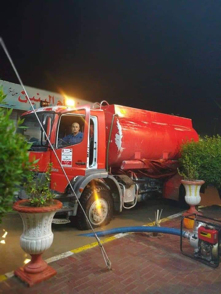 الدفاع المدني تستنفر جهدها وتسخر آلياتها لسحب مياه الأمطار في عموم المحافظات.