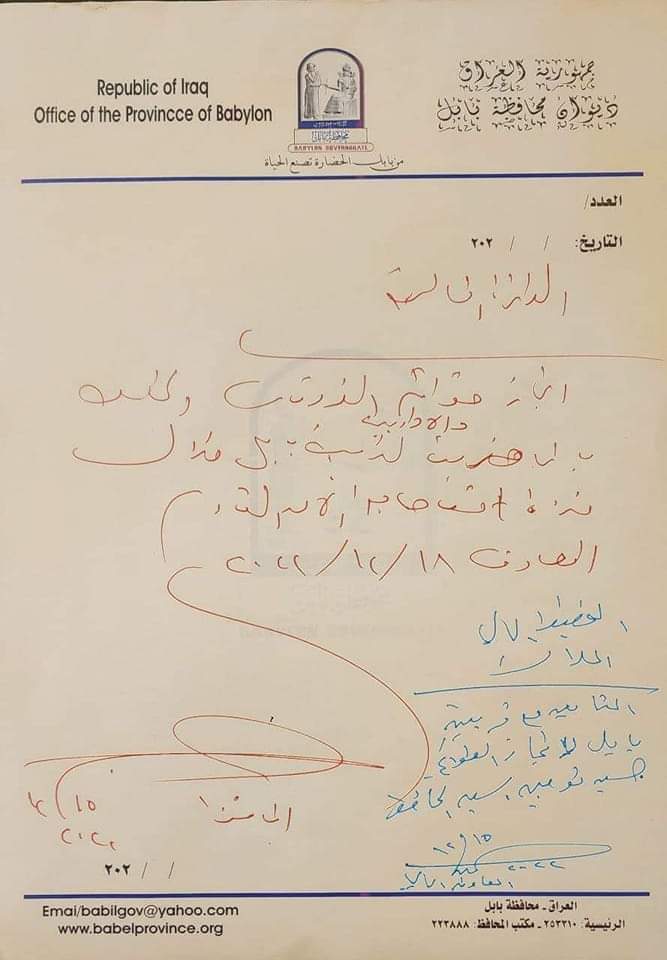 ⭕ بالوثيقة محافظ بابل يوجه بانجاز قوائم المحاضرين في تربية بابل وتوفير الإعتماد المالي للـ 10 أيام خلال مدة أقصاها الأحد المقبل الموافق 18 / 12 / 2022