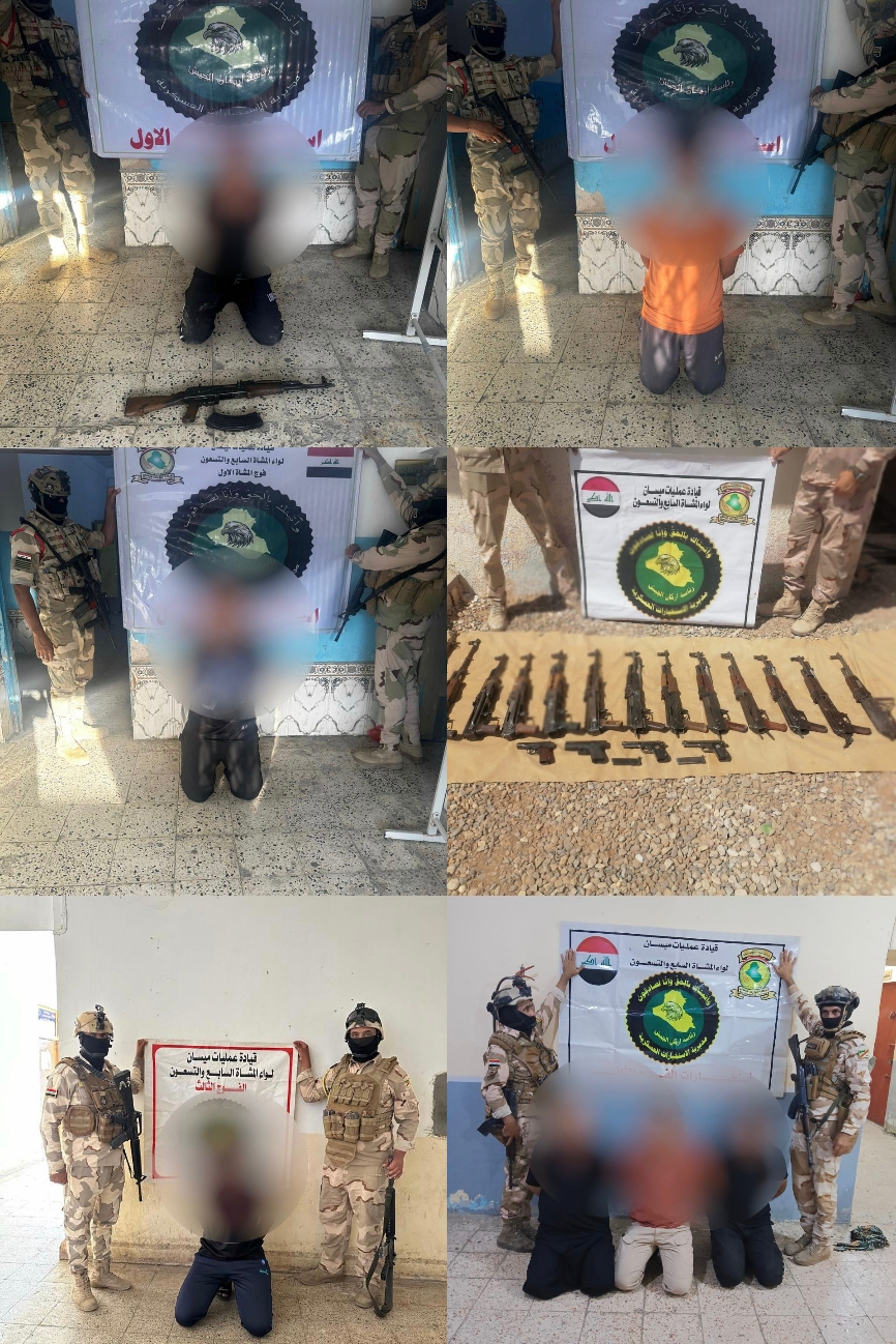قيادة عمليات ميسان تُلقي القبض على “مجموعة” من المتهمين وتصادر كمية من الأسلحة