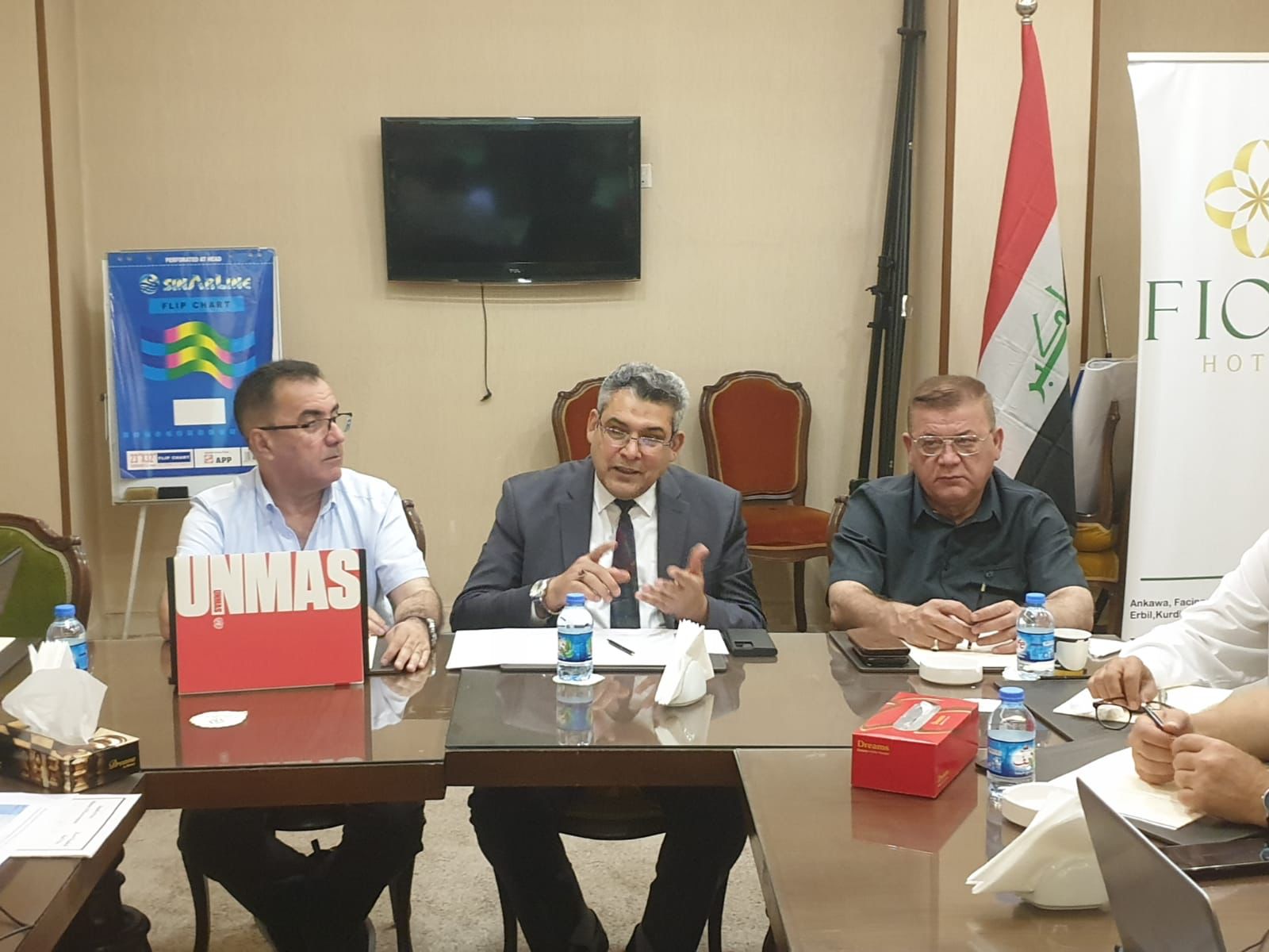 تدارست دائرة شؤون الألغام ودائرة الأمم المتحدة للأعمال المتعلقة بالألغام اليوم الاحد سلسلة من المعايير الخاصة بمجالات شؤون الالغام المختلفة في الورشة التقنية المختصة بمجال مراجعة وتحديث المعايير الوطنية التي رعتها دائرة الأمم المتحدة للأعمال المتعلقة بالألغام UNMAS في أربيل