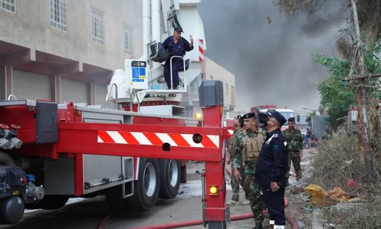 بقيادة ميدانية مباشرة من السيد مدير عام الدفاع المدني، اللواء الحقوقي محسن كاظم علك، ما زالت فرقنا تبذل قصارى جهدها لاحتواء نيران مخازن المواد الإنشائية في جانب الرصافة ببغداد ، تلاوى سواعدهم علب الأصباغ التي تتفجر في وجوههم، وإصرارهم راسخ وثابت على أرض صلبة لا تتزحزح حتى إتمام الإخماد.