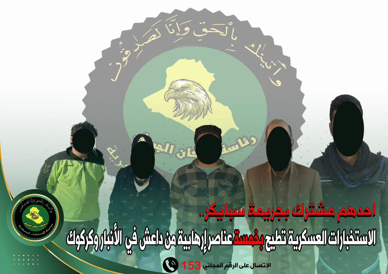 احدهم مشترك بجريمة سبايكر.. الاستخبارات العسكرية تطيح بخمسة عناصر إرهابية من داعش في الأنبار وكركوك
