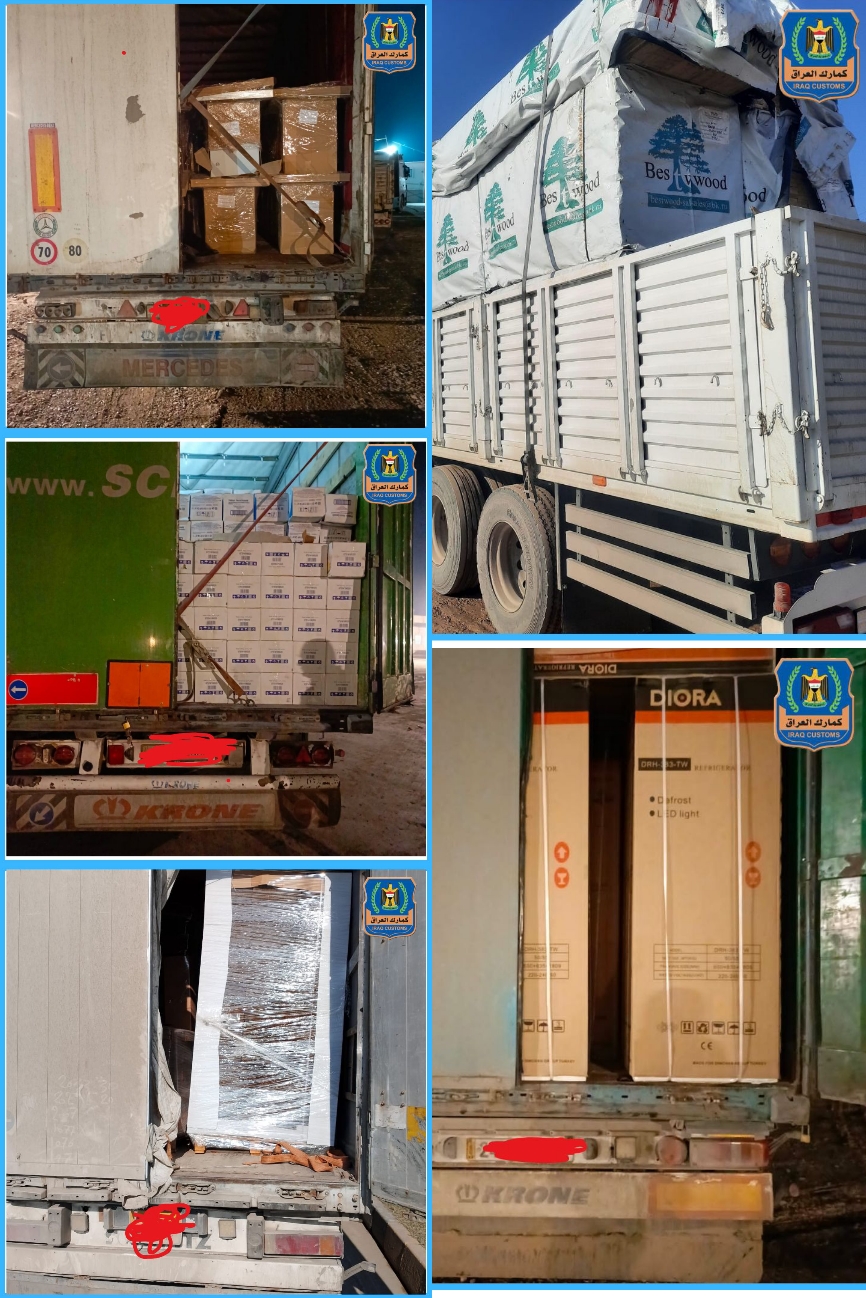 ضبط ( ٣٨ ) شاحنة مخالفة من قبل قسم التحري ومكافحة التهريب في مديرية كمرك المنطقة الشمالية.